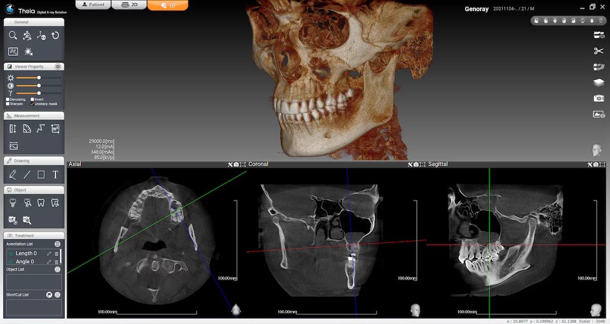 Ми робимо знімки на сучасному компьютерному томографі Genoray Papaya 3D Plus (16х14 см), який є одним з лідерів в світі рентген-діагностики, є безпечним, з мінімальним променевим навантаженням та швидким скануванням – всього 7,7 секунд